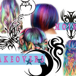 Hair colorful extensions or dying, temporary Henna tatoos.